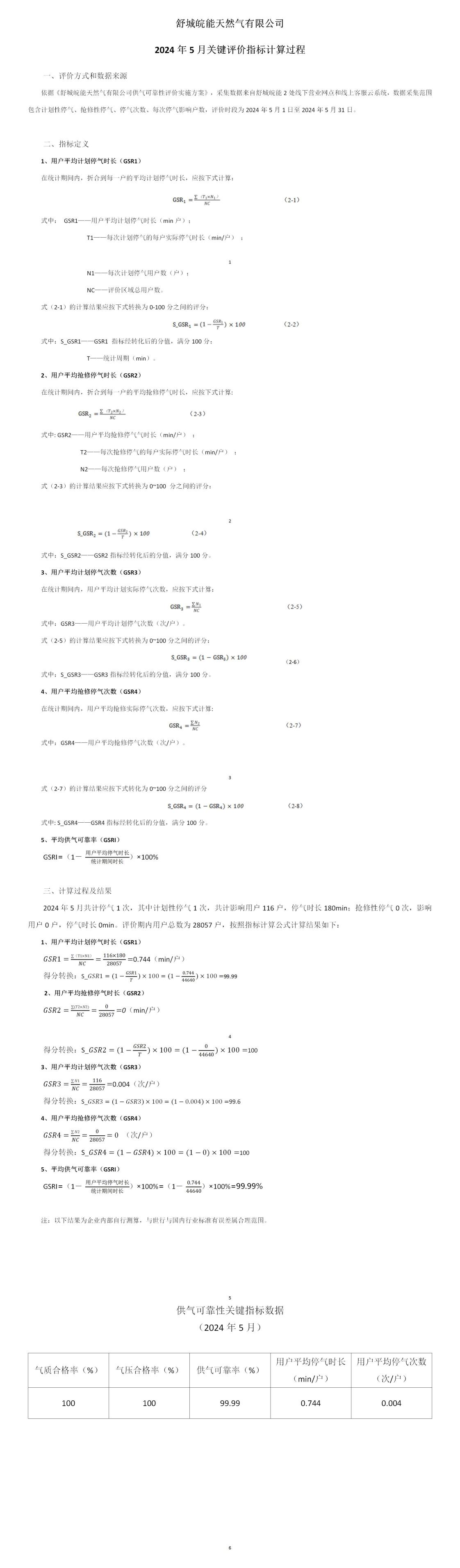 供气可靠性关键指标数据